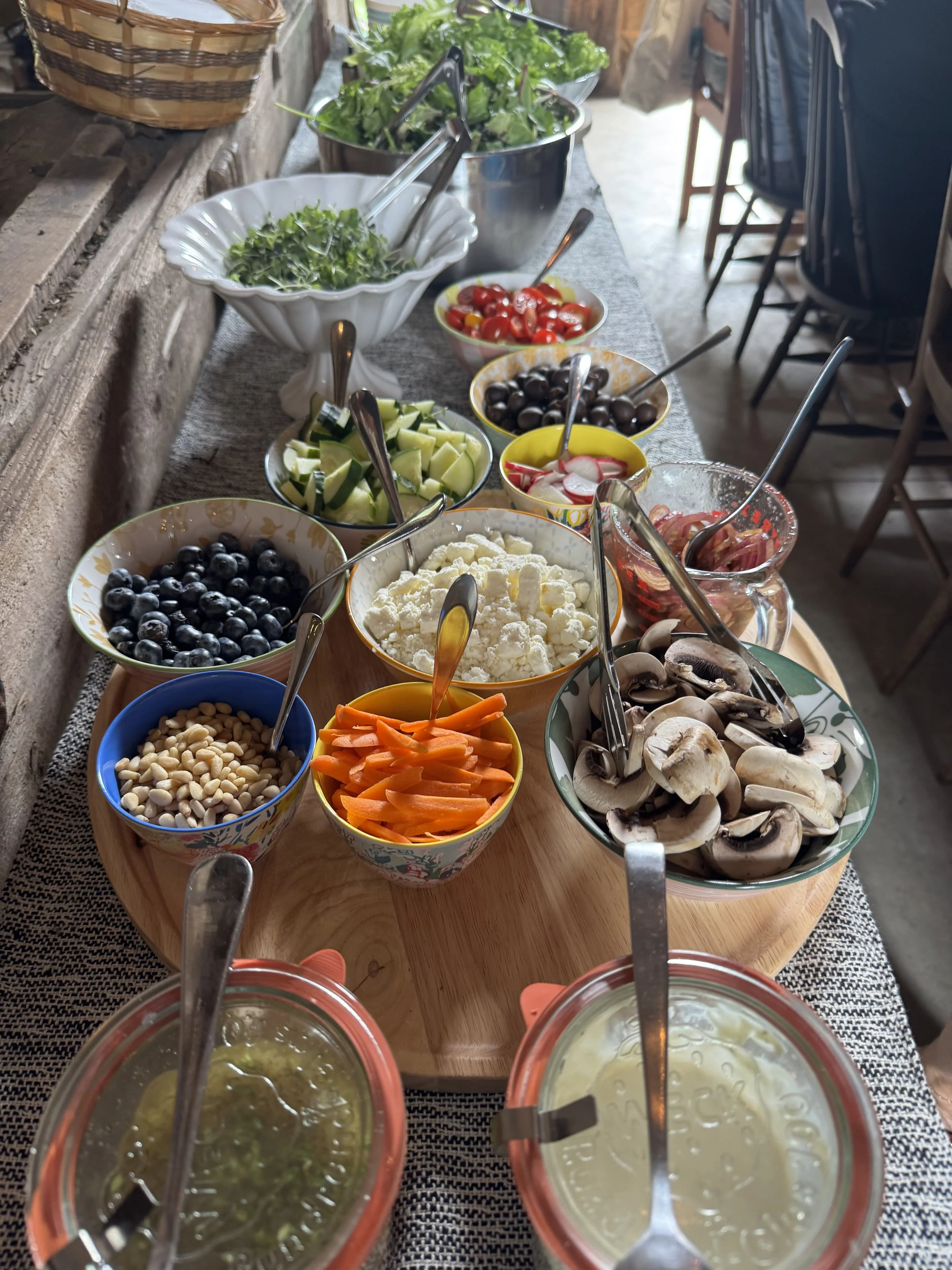 🥗 Enjoy farm-to-table feasts al fresco & in our historic timber frame barn